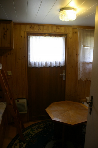 ein kleiner Tisch & der Ausgang auf die hintere Terasse