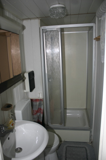 Duschkabine und Spiegelschrank.